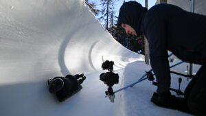 On a beautiful, blue-bird day in the Swiss Alps, a female athlete listens to the weather report over her morning coffee. After contemplating hitting the ski slopes with the other outdoor enthusiasts, she has an idea… she will go sledding instead. She digs her sled out from the back of the gear room and heads to the top of the mountain, where she is alone on top of the world. She drops in on her sled, headfirst.